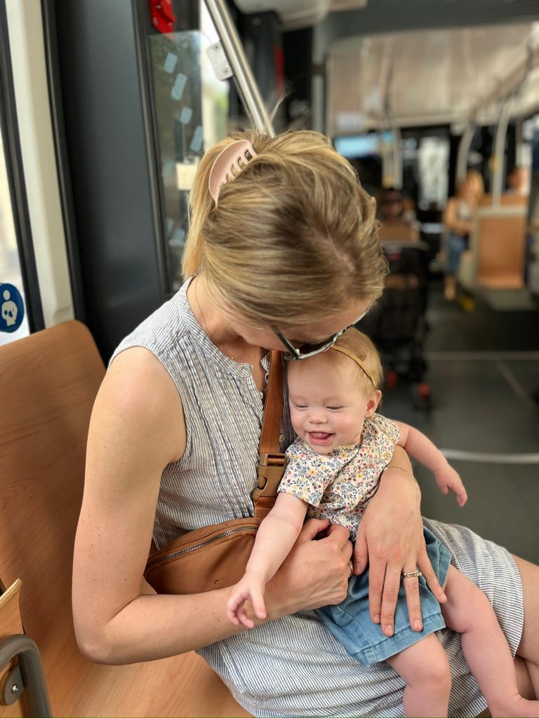 An unedited photo with our youngest on the tram in Vienna. She looks just like my husband (too precious!) and is the happiest, giggliest little baby. We adore her.