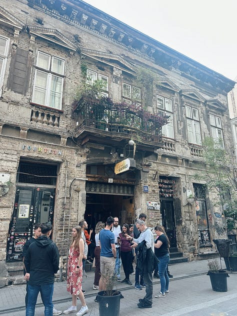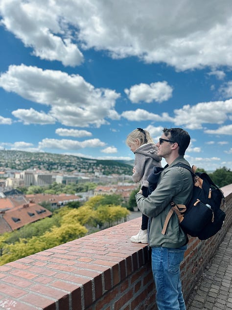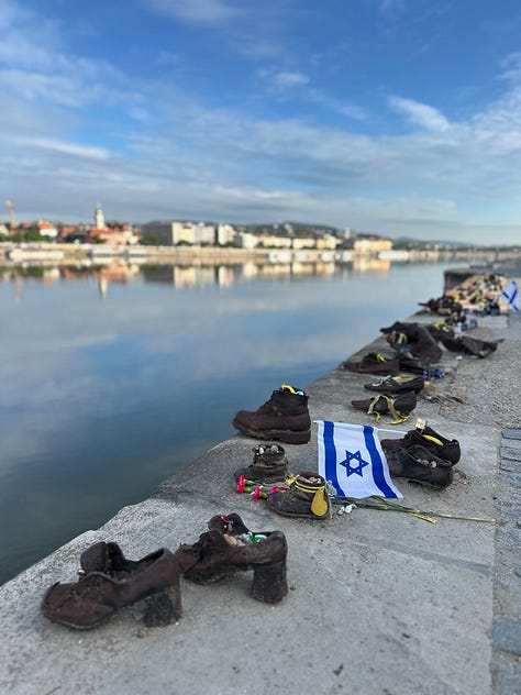 A Hungarian Ruin Bar (We popped inside with our strollers! Ha!), the Buda side of Budapest, and a profound Holocaust memorial.